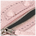 メダリオンパターンが特徴的でスタッズにカバーが施されたモデルは品良く仕上がっています。(写真右)