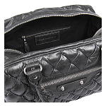 バレンシアガらしいアンティークな風合いの柔らかな山羊革で、内側は、コットン仕上げ。ファスナー式の内ポケットが付いています。キルティングのふわふわ感がとってもオシャレなバッグに仕上げられています。。