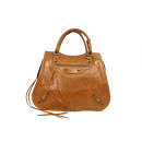バレンシアガの新型ハンドバッグ。アンティークな風合いの柔らかなヤギ革で作られたボディにバレンシアガならではの1点もののようなデザインを施したとってもオシャレなバッグ。