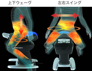 ウォーキングと同等程度の運動量 揺られるボディが変化し始める! これがロデオボーイ2のロデオフィットネス。 座面が立体的な動きをし、無意識に上下・左右の揺れを身体で感じて、バランスをとろうとする乗馬運動です。